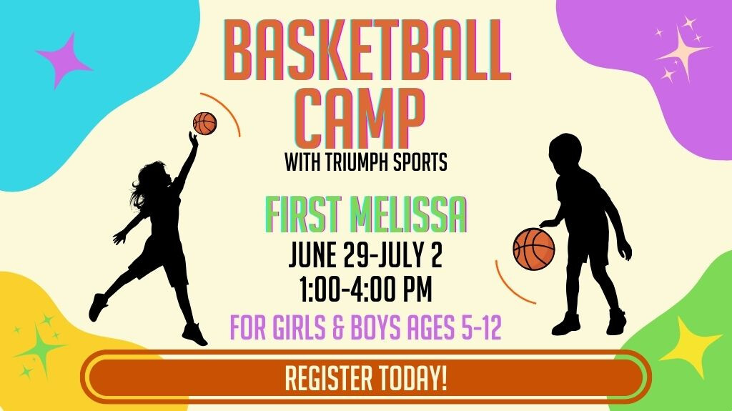 Triumph Sports is partnering with First Melissa to offer an exciting Basketball Camp designed for boys and girls ages 5-12! This camp, taking place from June 29-July 2, runs from 1:00 PM to 4:00 PM each day and is perfect for young athletes looking to develop their basketball skills in a fun and supportive environment. Campers will focus on key fundamentals such as dribbling, passing, shooting, and teamwork, all while enjoying friendly competition and building lasting friendships.