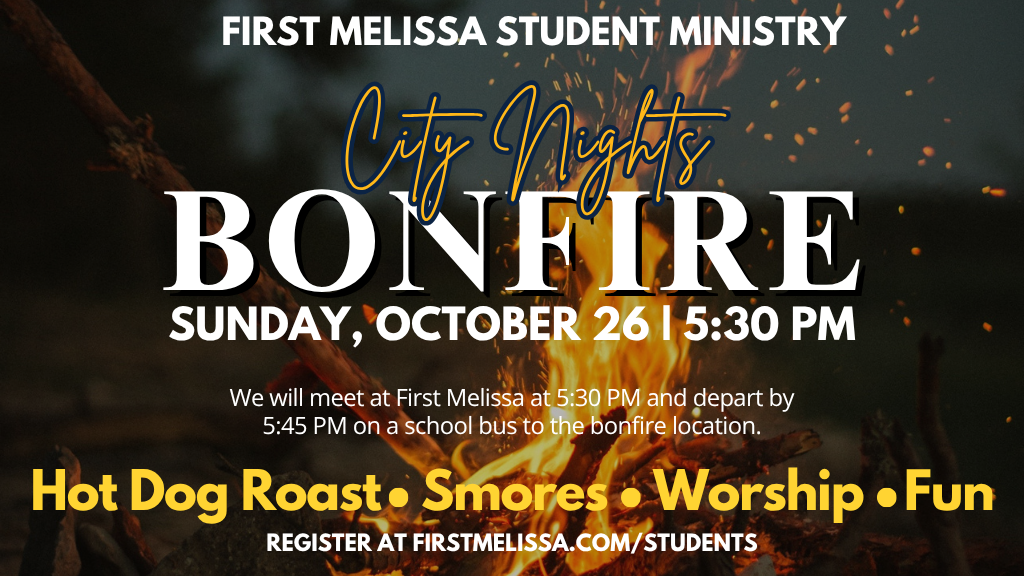 First Melissa Students is where students (grades 6 through 12) can hear the true Gospel of Jesus told in a real and exciting way. We offer times every week for students to gather in community, have some fun, eat some food, join in worship, hear the Word, and discuss what God's Word means for their lives. Our team of selfless volunteers help make our events the best they can be by engaging students in discussion, leading by example, and keeping our students safe.