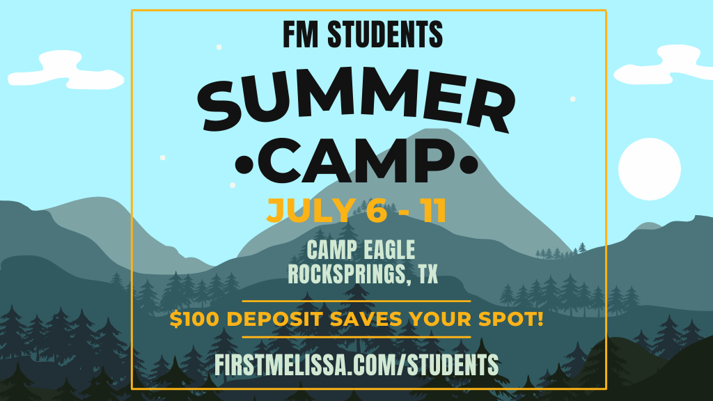 First Melissa Students is where students (grades 6 through 12) can hear the true Gospel of Jesus told in a real and exciting way. We offer times every week for students to gather in community, have some fun, eat some food, join in worship, hear the Word, and discuss what God's Word means for their lives. Our team of selfless volunteers help make our events the best they can be by engaging students in discussion, leading by example, and keeping our students safe.
